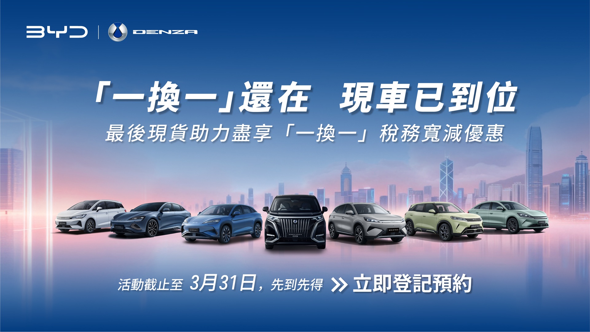 Final stock of BYD & DENZA available. Complete your vehicle registration by March 31 to take full advantage of the "One-for-One" tax concession. Visit our BYD and DENZA showrooms or call our hotline today to secure your car....